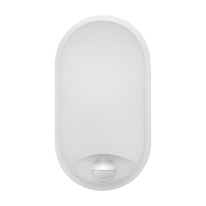 Aplique modelo RABAT con sensor de PIR, instalación en superficie y apta para exteriores con un índice de protección IP65. Potencia de 14w y luminosidad de 1400lm. Iluminación directa y 3 temperaturas de color seleccionables mediante DIP switch. Grado de protección de resistencia mecánica a impactos IK07. Cuerpo de policarbonato y acabado blanco. Certificado CE & ROHS