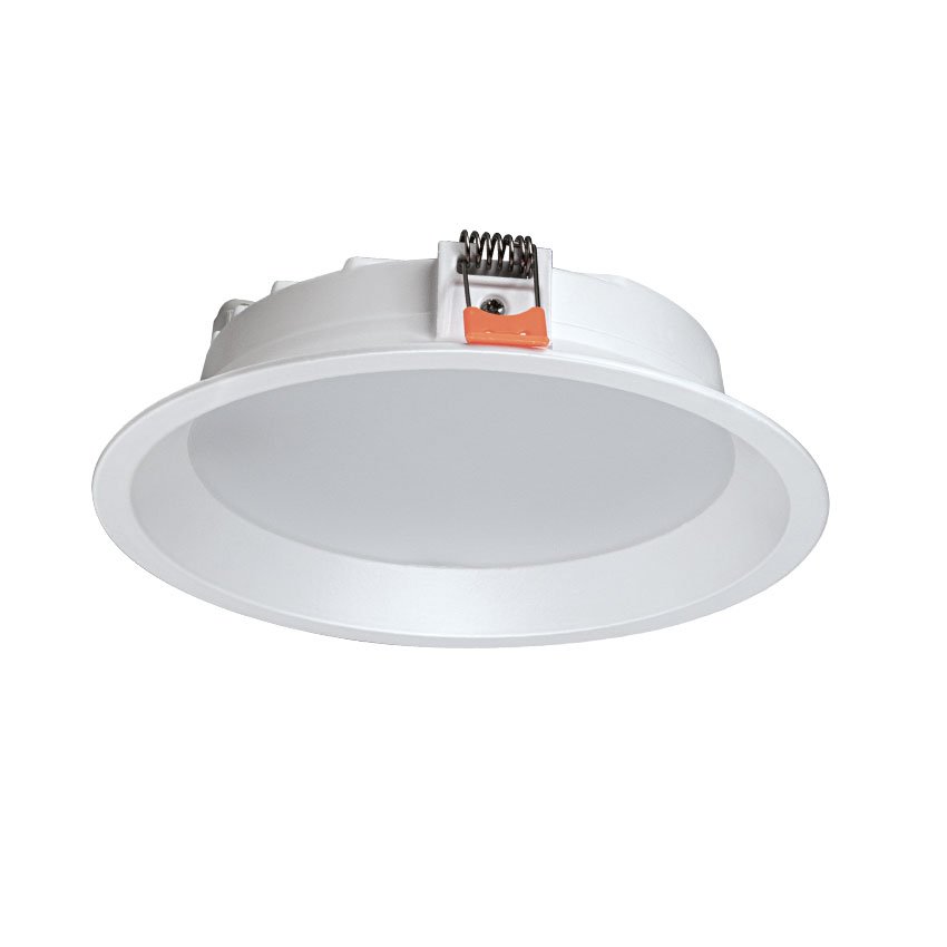Downlight LED empotrable con grado de protección IP65. 20w de potencia y luminosidad de 2120lm. Apertura óptica de 180º con distribución del flujo lumínico simétrico, y temperatura de 3000K. Grado de resistencia mecánica IK06. Fabricado en aluminio de acabado blanco y difusor de policarbonato de acabado opal. Certificado CE & ROHS